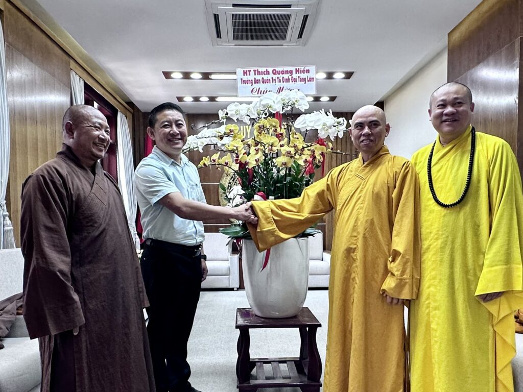 Sáng ngày 20-2-2025, Thượng tọa Thích Nhuận Nghĩa, Uỷ viên HĐTS GHPGVN, Phó Trưởng Ban Thường trực Ban Trị sự Phật giáo tỉnh, Phó Trưởng Ban Quản trị tổ đình Đại Tòng Lâm và Đại đức Thích Nhuận Bảo, Ủy viên Thường trực Ban Trị sự Phật giáo tỉnh, Phó Trưởng Ban Quản trị tổ đình Đại Tòng Lâm cùng đi với đoàn Thường trực Ban Trị sự Phật giáo thị xã Phú Mỹ đã đến thăm, tặng hoa chúc mừng tân Bí thư Thị ủy Phú Mỹ Huỳnh Sơn Tuấn.