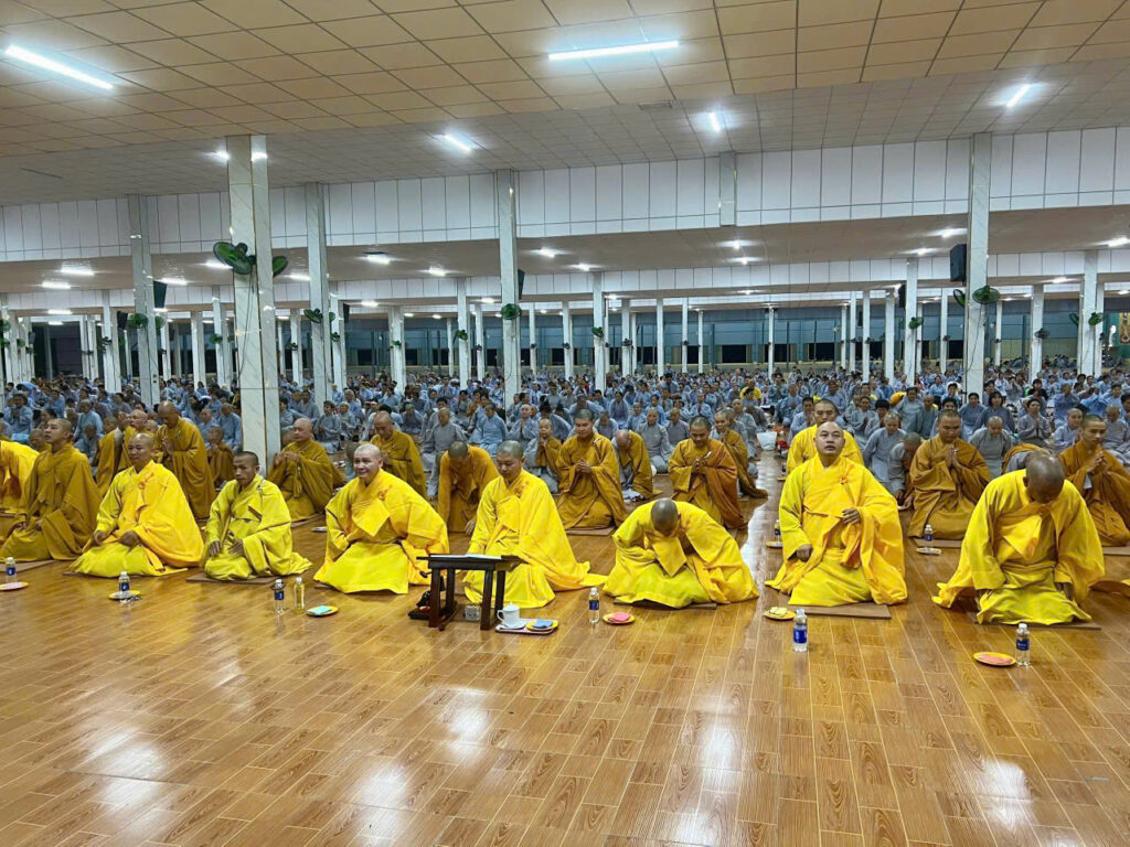 Tại nơi hội trường lớn tổ đình Đại Tòng Lâm, chư tôn đức Ban Quản trị, Tăng Ni và hàng ngàn Phật tử trang nghiêm hướng về thánh tượng Bồ tát Quán Thế Âm xưng tán hồng danh, thành kính đảnh lễ 500 danh hiệu Bồ tát Quán Thế Âm, nguyện cầu quốc thới dân an, nhà nhà ấm no hạnh phúc.