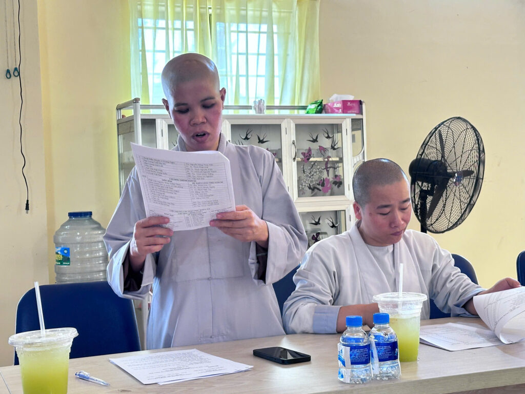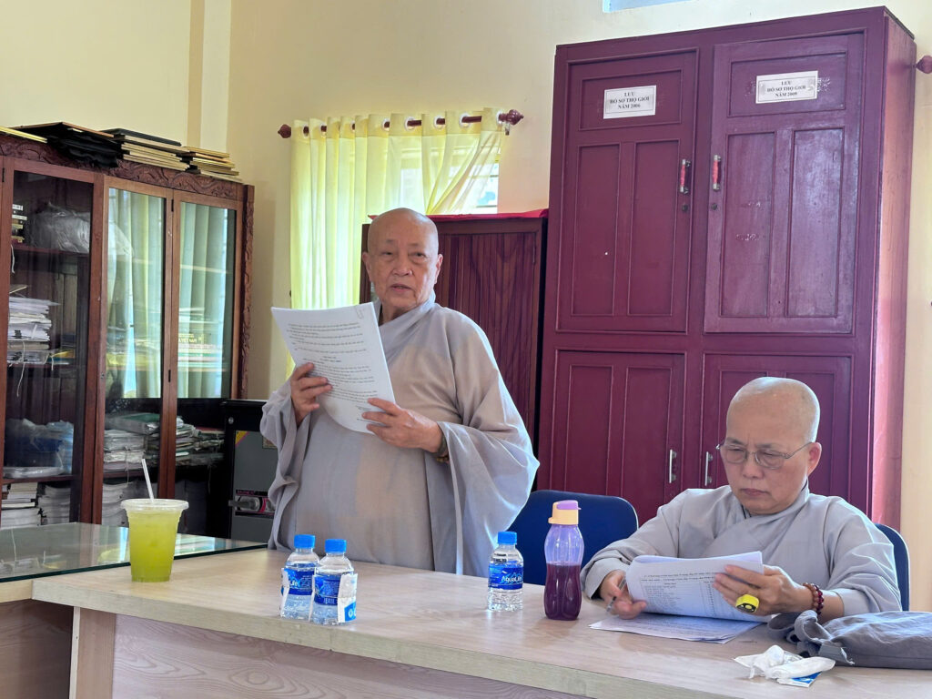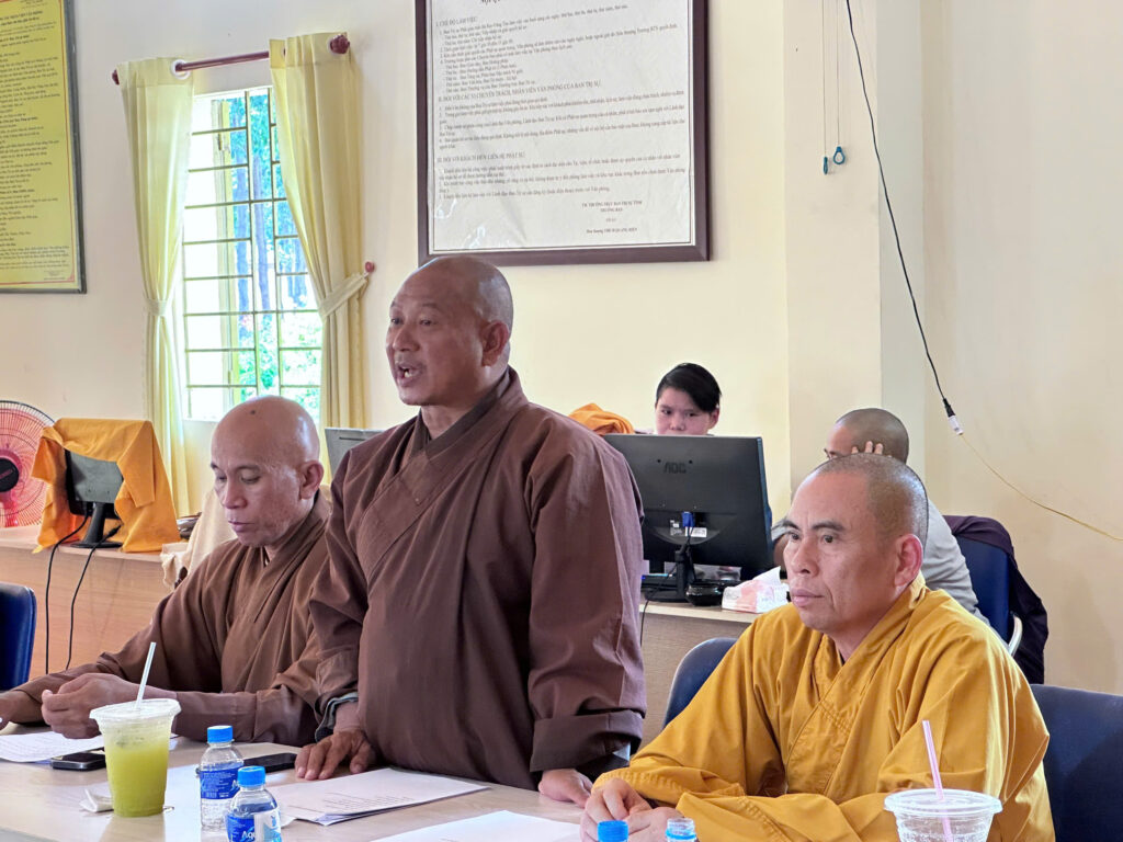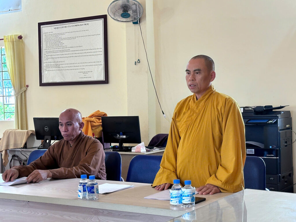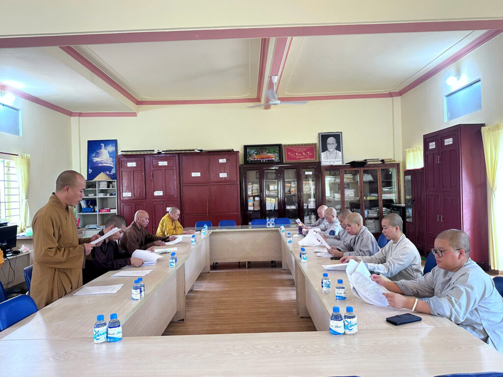 Sau lời phát biểu khai mạc của Thượng tọa Thích Nhuận Nghĩa, Đại đức Thích Đức Duy, Phó Thư ký kiêm Chánh Văn phòng thông qua bản dự thảo Quy chế tuyển sinh của Trường Trung cấp Phật học Đại Tòng Lâm, tỉnh Bà Rịa – Vũng Tàu.