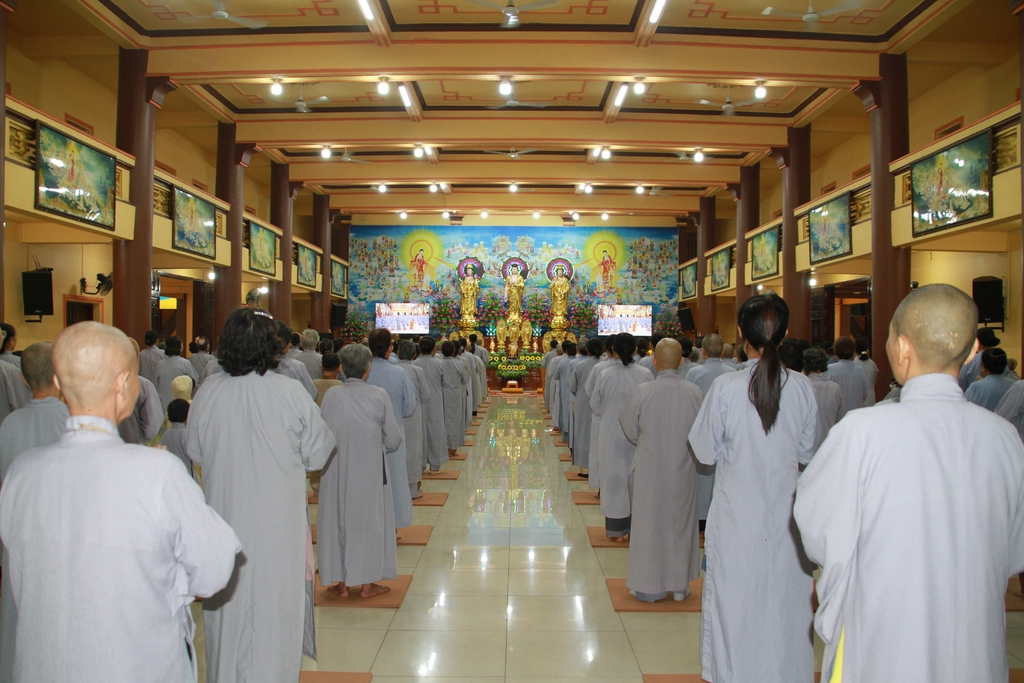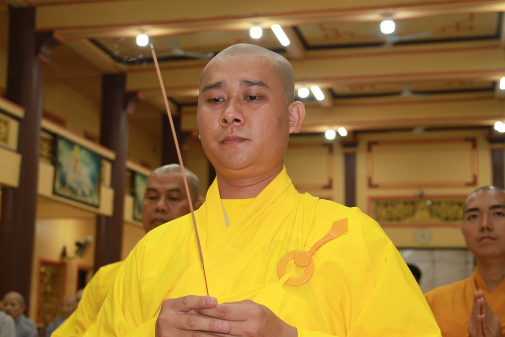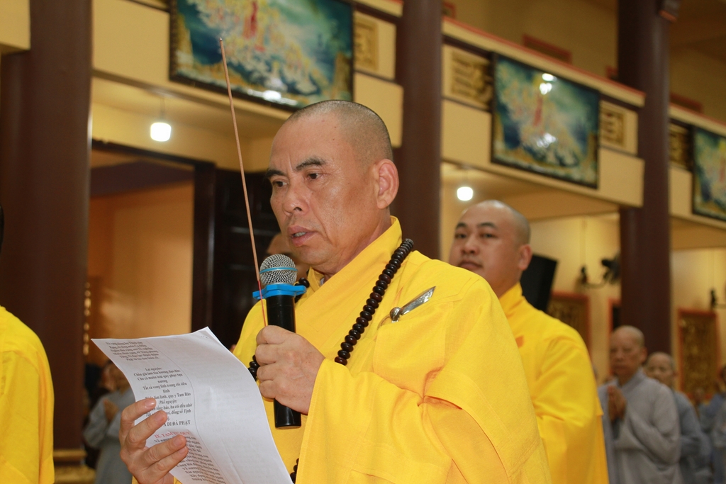 Sau nghi thức hành chánh, Thượng toạ Trưởng ban Tổ chức trong vai trò Sám chủ đã niêm hương bạch Phật và hướng dẫn đại chúng thực hiện nghi thức Khánh Đản.