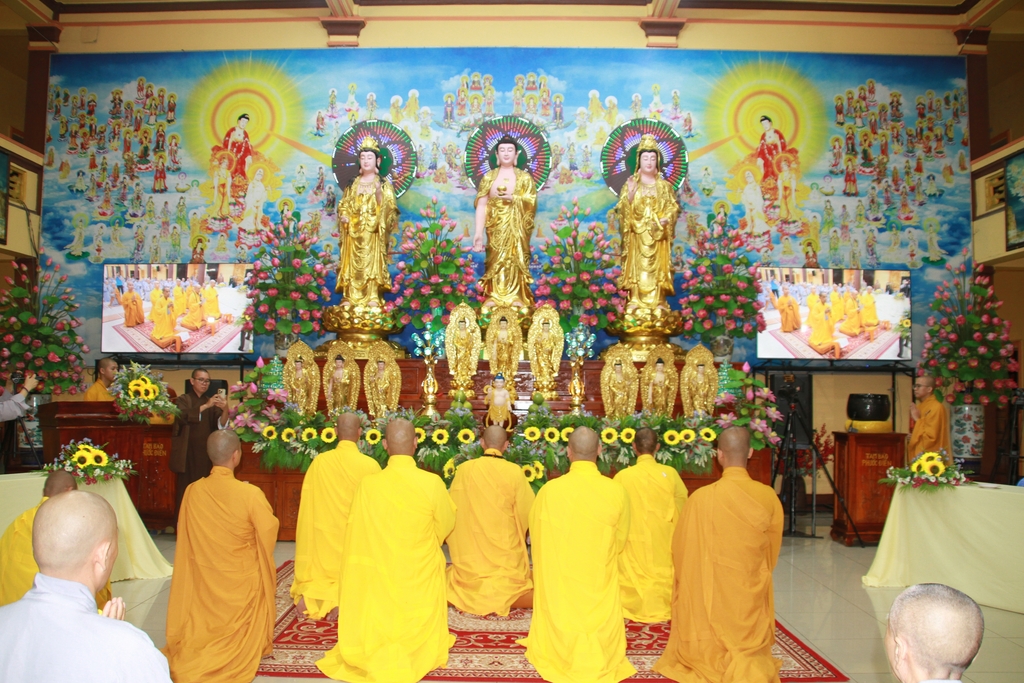 Chứng minh và tham dự lễ có TT. Thích Nhuận Nghĩa – Uỷ viên HĐTS – Phó Trưởng ban Thường trực BTS PG tỉnh – Phó Trưởng ban Quản trị tổ đình Hộ Pháp – Vạn Phật Quang Đại Tòng Lâm tự; Đại đức Thích Nguyên Trụ – Uỷ viên TT BTS tỉnh – Phó Trưởng ban TTTT PG tỉnh kiêm Phó Thư ký BTS GHPGVN Tp. Phú Mỹ; Đại đức Thích Quảng Kiên – Uỷ viên BTS Tp. Phú Mỹ; Đại đức Thích Nhuận Đại – Trưởng ban Điều hành Đạo tràng Niệm Phật; Đại đức Thích Nhuận Thịnh – Phó Trưởng ban Điều hành Đạo tràng Niệm Phật Tổ đình Hộ Pháp, cùng Chư tôn đức Tăng Trường TCPH Đại Tòng Lâm – Tổ đình Hộ Pháp và gần 500 Phật tử tham dự.