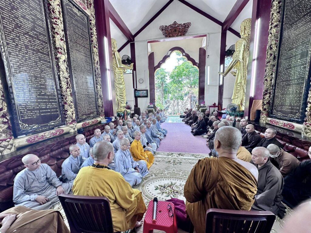 Ngoài ra, Thượng tọa cũng cho biết thêm nguồn gốc cây Bồ đề, bảo tháp thờ xá lợi Phật và ý nghĩa việc thờ xá lợi Phật. Cây Bồ đề được Đại đức Narada Maha Thera chiếc từ một cây Bồ đề tại đất nước Tích Lan (được chiếc từ cây Bồ đề gốc ở Ấn Độ, nơi Đức Phật thành đạo) mang đến trồng tại đây khi Ngài trở lại thăm núi Lớn và lưu lại hoằng pháp vào năm 1960. Bảo tháp thờ xá lợi Đức Phật được khởi công xây dựng từ tháng 7 năm 1961 và khánh thành vào tháng 3 năm 1963 sau 19 tháng thi công. Bảo tháp Xá-lợi Phật hình bát giác cao 17 m, trên có búp sen, bên trong đặt 13 viên xá lợi Đức Phật do Hòa thượng Narada Maha Thera phát tâm cúng dường. Việc tôn thờ xá lợi đức Phật giúp cho Tăng Ni, Phật tử phát khởi tín tâm kiên cố, tinh tấn thực hành giáo pháp, tăng trưởng công đức. Bên cạnh đó, Thượng tọa cũng chia sẽ thêm cho Tăng Ni sinh cách nhận biết xá lợi đức tin và xá lợi thật của Phật, xá lợi các vị thánh Tăng, các vị có công đức tu hành.