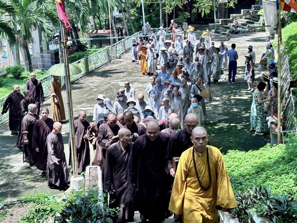 Đoàn do Thượng tọa Thích Nhuận Nghĩa, Ủy viên HĐTS, Phó Trưởng ban Thường trực Ban Trị sự Phật giáo tỉnh, Phó Hiệu trưởng Thường trực nhà trường làm trưởng đoàn; cùng chư tôn đức Ban Giám hiệu, Ban Điều hành và hơn 100 Tăng Ni sinh lớp Cao đẳng Phật học và lớp Trung cấp Phật học cùng đi.