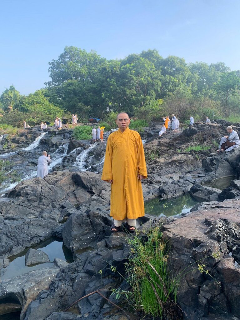 Điểm đến đầu tiên: Thác Hòa Bình (xã Bình Châu, huyện Xuyên Mộc). Thác Hòa Bình còn nhiều vẻ hoang sơ, khung cảnh thiên nhiên thật yên bình. Dòng thác trong vắt, chảy lượn qua những khe đá lớn nhỏ tạo thành gợn nước trắng xóa. Nhiều chủng loại cây xanh hai bên suối còn ẩn trong sương mờ. Tại đây, sau những lời hướng dẫn của Thượng tọa Trưởng đoàn Thích Nhuận Nghĩa, các Tăng Ni sinh đã có gần 2 giờ đồng hồ trải nghiệm thực tế, hoà mình vào thiên nhiên hùng vỹ, lắng nghe âm thanh của của núi rừng, tiếng suối reo, tiếng chim hót líu lo, tiếng ve mùa hè râm rang; chánh niệm trong từng hơi thở với bầu không khí trong lành, cảm nhận sự bình an nội tại.