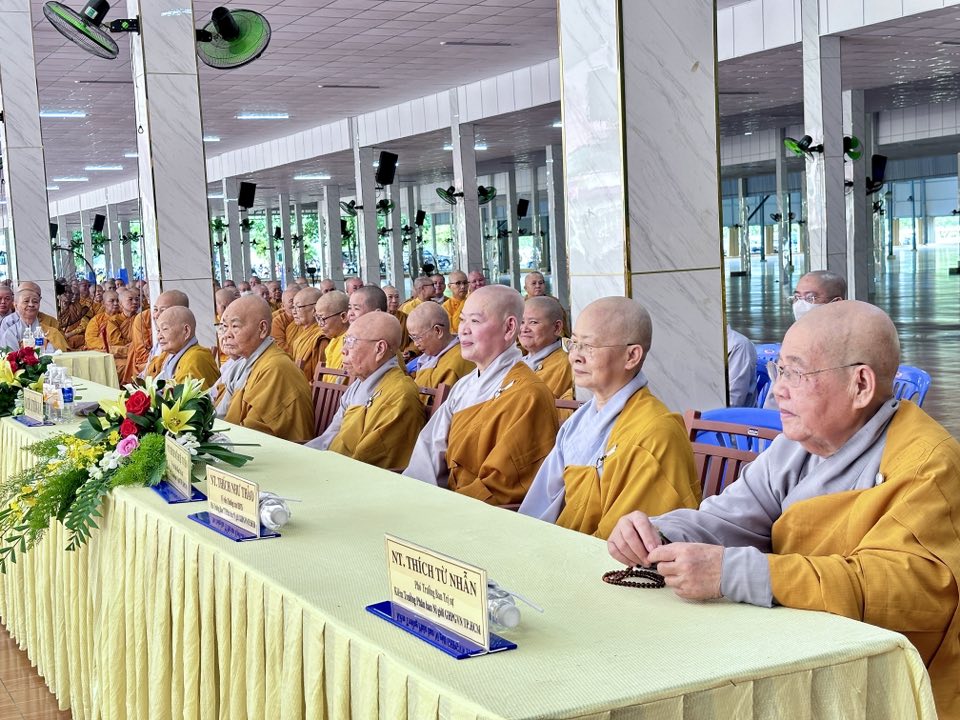 Thượng tọa Thích Nguyên Thái – Phó Trưởng Ban Trị sự GHPGVN TP. Hồ Chí Minh thay mặt Ban Tổ chức các trường hạ khu vực thành phố Phú Mỹ (cũ) báo cáo sơ bộ công tác tổ chức an cư kiết hạ của BTS GHPGVN thành phố Phú Mỹ (cũ). Theo đó, trên địa bàn TP. Phú Mỹ (cũ) có 11 trú xứ đăng ký an cư gồm Tổ đình Đại Tòng Lâm, Tịnh xá Ngọc Thạnh, Chùa Vạn Thiện, Chùa Phật Quang, Thiền đường Liễu Quán 1 (dành cho chư Tăng); Ni viện Thiện Hòa, Thiền viện Phổ Chiếu – Huệ Chiếu, Chùa Kiều Đàm, Chùa Huê Lâm; Thiền viện Minh Đức, Tịnh xá Ngọc Sơn Dinh với số lượng 1659 hành giả (trong đó, Tăng 660 vị, chư Ni 999 vị). Đồng thời Thượng tọa cũng cho biết biết thêm, ngoài các chương trình tu học của mỗi trường hạ, Ban Trị sự TP. Phú Mỹ còn tổ chức các buổi sinh hoạt học hạ tập trung tại 2 điểm Tổ đình Đại Tòng Lâm và Tịnh xá Ngọc Thạnh với các nôi dung như về Hiến chương GHPGVN, Quy chế Ban Tăng sự, Luật tín ngưỡng tôn giáo, An ninh quốc phòng… do chư tôn đức Ban Trị sự, Ban Tăng sự, Ban Hoằng pháp và các Cơ quan chức năng Nhà nước triển khai.
