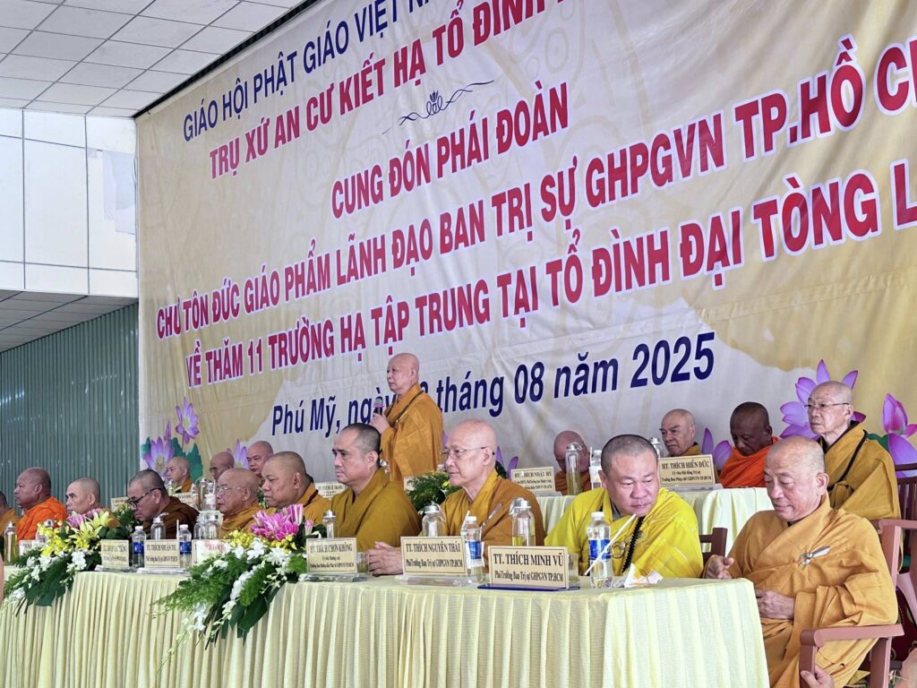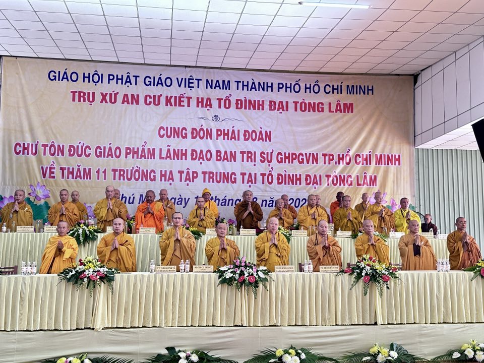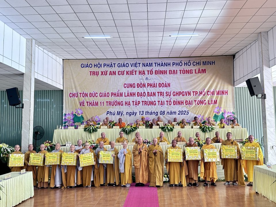 Sáng ngày 13/8/2025, (nhằm ngày 20 tháng 6 Nhuần năm Ất Tỵ), đoàn Thường trực BTS GHPGVN TP.Hồ Chí Minh do Hoà thượng Thích Lệ Trang – Phó Chủ tịch HĐTS, Trưởng Ban Nghi lễ Trung ương, Trưởng Ban Trị sự GHPGVN TP. Hồ Chí Minh làm trưởng đoàn đã đến thăm và cúng dường trường hạ Tổ đình Đại Tòng Lâm và 10 trường hạ trên địa bàn thành phố Phú Mỹ (cũ).