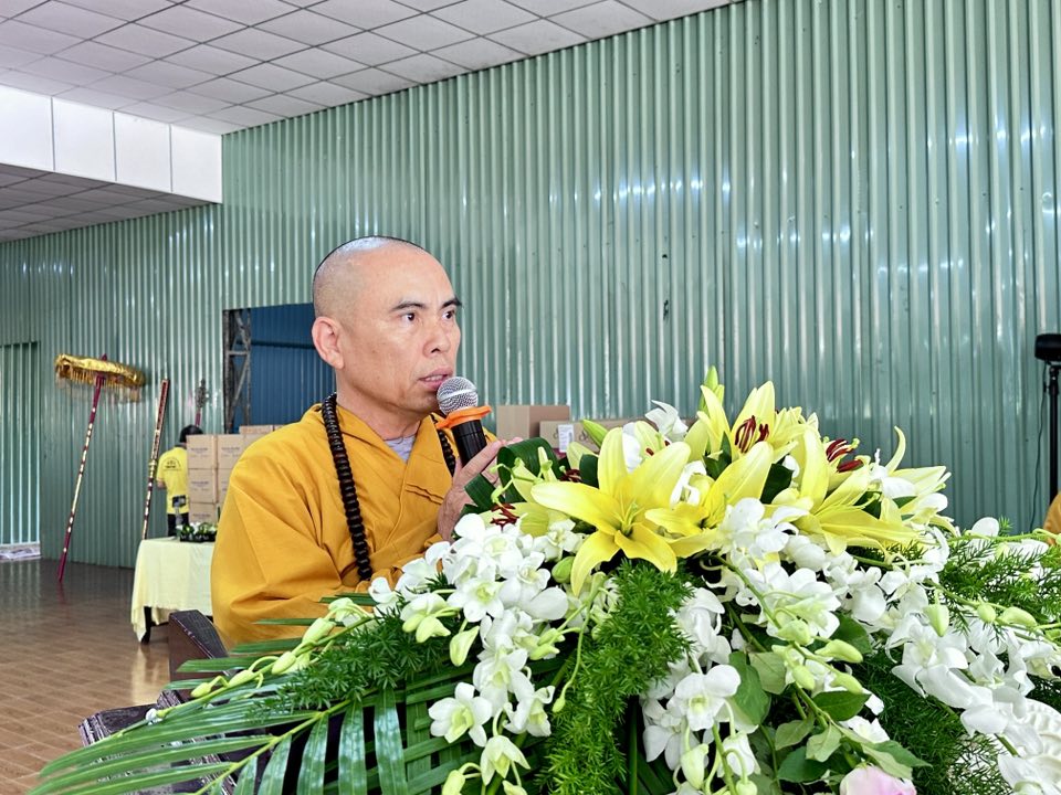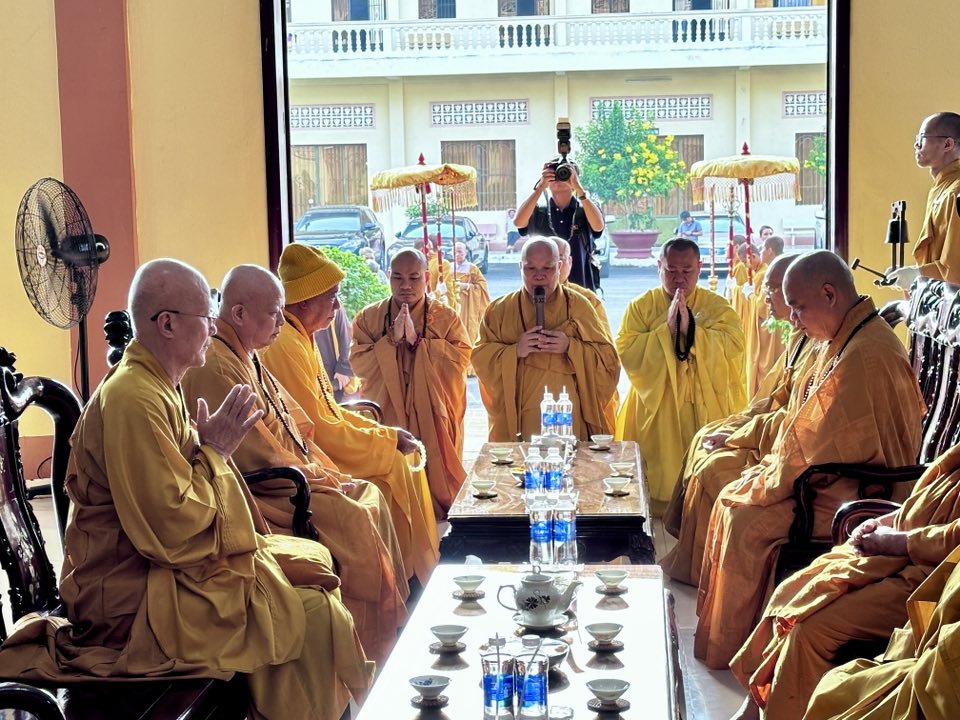 Tháp tùng đoàn có TT. Thích Thanh Phong, Phó Chủ tịch HĐTS, Trưởng Ban Kinh tế Tài chánh trung ương, Phó Trưởng ban Thường trực GHPGVN TP.HCM kiêm Trưởng ban Từ thiện BTS GHPGVN TP.HCM; HT. Thích Nhật Hỷ, UV HĐTS, Phó Trưởng ban Thường trực, Trưởng Ban Hoằng pháp BTS GHPGVN TP.HCM; cùng chư Tôn đức Phó Trưởng ban BTS GHPGVN TP. Hồ Chí Minh.