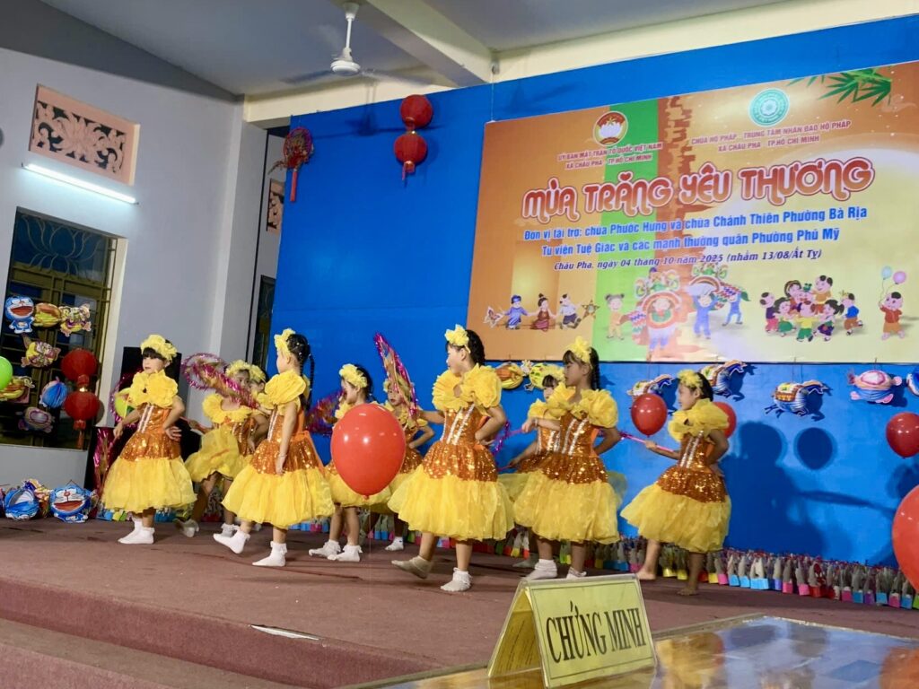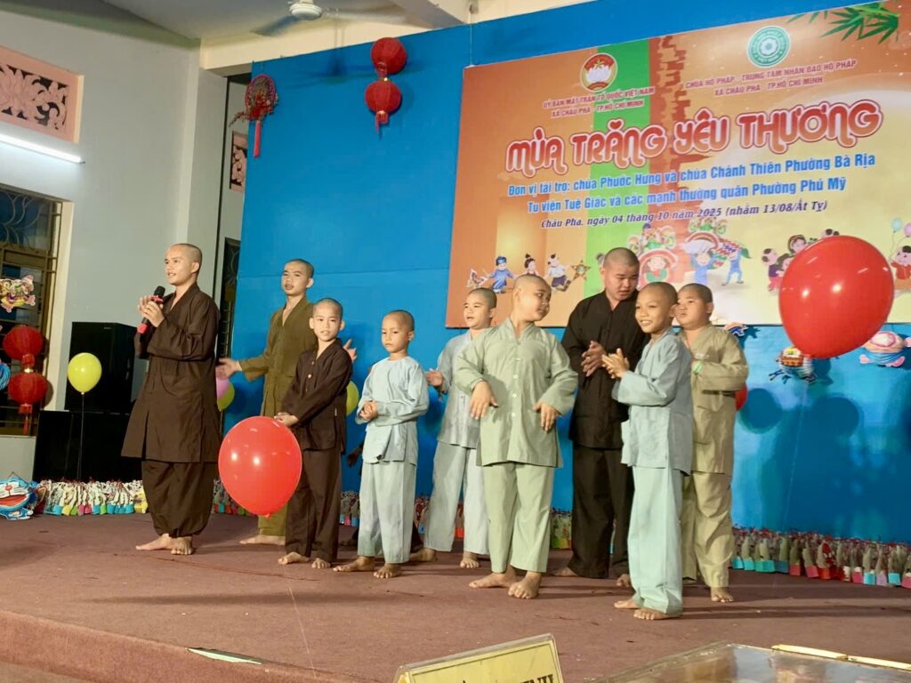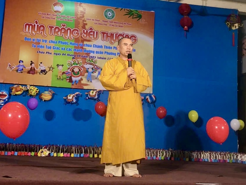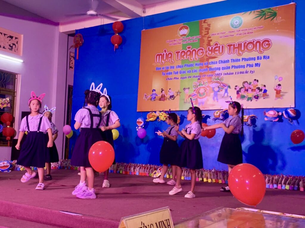 Tối ngày 4/10/2025 (nhằm ngày 13/8/Ất Tỵ), Chùa Hộ Pháp – Trung Tâm Nhân Đạo Hộ Pháp, xã Châu Pha, TP HCM phối hợp cùng với Uỷ ban Mặt trận Tổ quốc Việt Nam xã Châu Pha tổ chức chương trình “Mùa Trăng Yêu thương năm 2025” tặng quà Trung thu cho hơn 800 em thiếu nhi, học sinh tại địa phương.