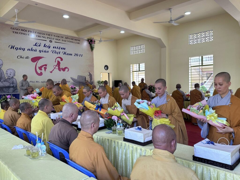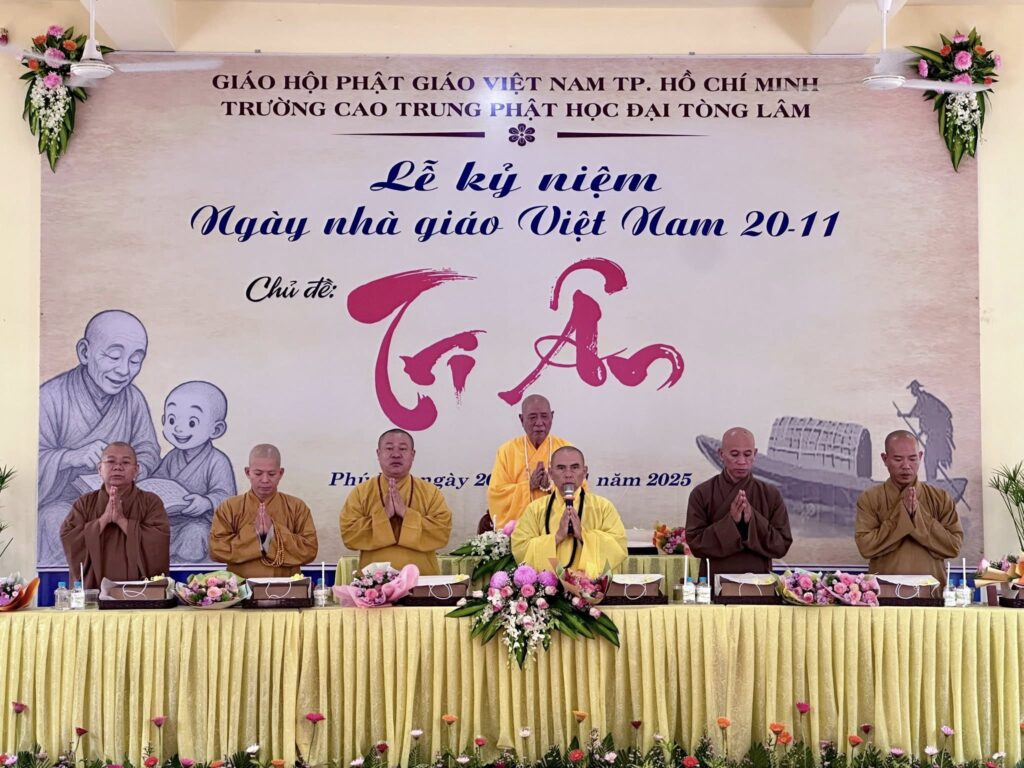 Sáng ngày 20-11-2025, tập thể Tăng Ni sinh 2 lớp Trung cấp Phật học khóa XI và Cao đẳng Phật học khóa IX Trường Cao Trung Phật học Đại Tòng Lâm đã tổ chức lễ kỷ niệm ngày nhà giáo Việt Nam tri ân chư tôn đức Ban Giám hiệu, Ban Giáo thọ, Ban Điều hành và Văn phòng trường.