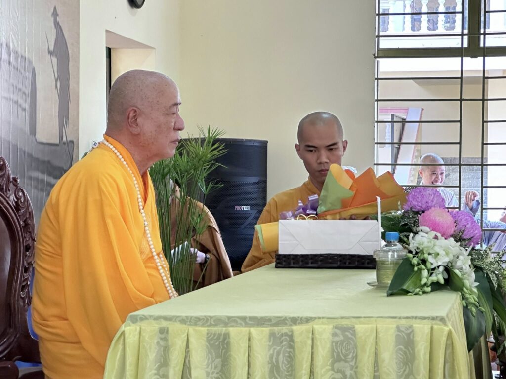 Dịp này, tập thể Tăng Ni sinh 2 lớp cũng có những bó hoa tươi thắm kính dâng lên Hoà thượng Hiệu trưởng, chư tôn Ban Giám hiệu, Quý Giáo thọ sư và chư tôn đức Ban Điều hành trường bày tỏ lòng tri ân, báo ân cũng như thể hiện tinh thần “Tôn sư trọng đạo”.