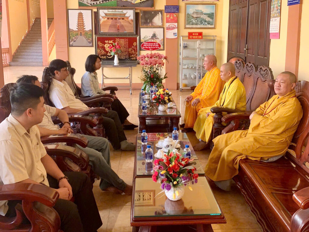 Cũng trong sáng nay, tại nhà khách Tổ đình Đại Tòng Lâm, lãnh đạo Phòng PA02 công an TP. HCM do bà Phạm Thị Yến Bình, Phó Trưởng phòng PA02 công an TP. HCM làm trưởng đoàn đã đến thăm hỏi và có lời chúc tốt đẹp đến Trưởng lão Hòa thượng Thích Quảng Hiển, Ủy viên Thường trực HĐCM GHPGVN, Chứng minh Ban Trị sự THPG TPHCM, Hiệu trưởng trường Cao Trung Phật học Đại Tòng Lâm cùng chư tôn đức trong Ban Giám hiệu nhân ngày nhà giáo Việt Nam, 20-11.