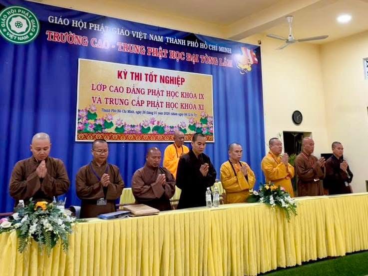 Sáng nay, ngày 26-1-2026, tại Trường Cao – Trung cấp Phật học Đại Tòng Lâm (P. Phú Mỹ, TP.HCM), Ban Giám hiệu nhà trường đã trang nghiêm tổ chức Lễ khai mạc kỳ thi tốt nghiệp cho Tăng Ni sinh lớp Trung cấp Phật học khóa XI và Cao đẳng Phật học khóa IX (niên khóa 2023–2025).