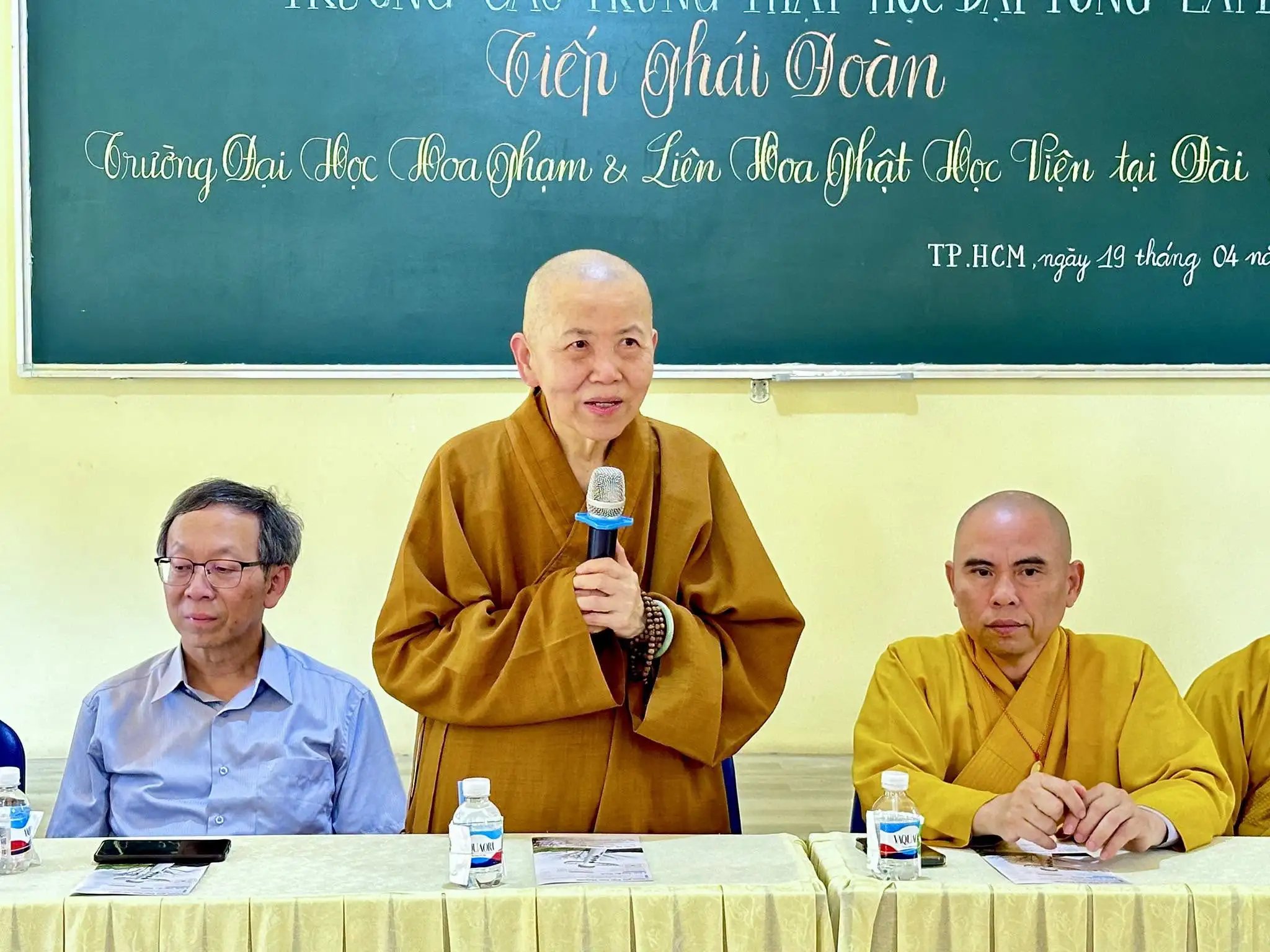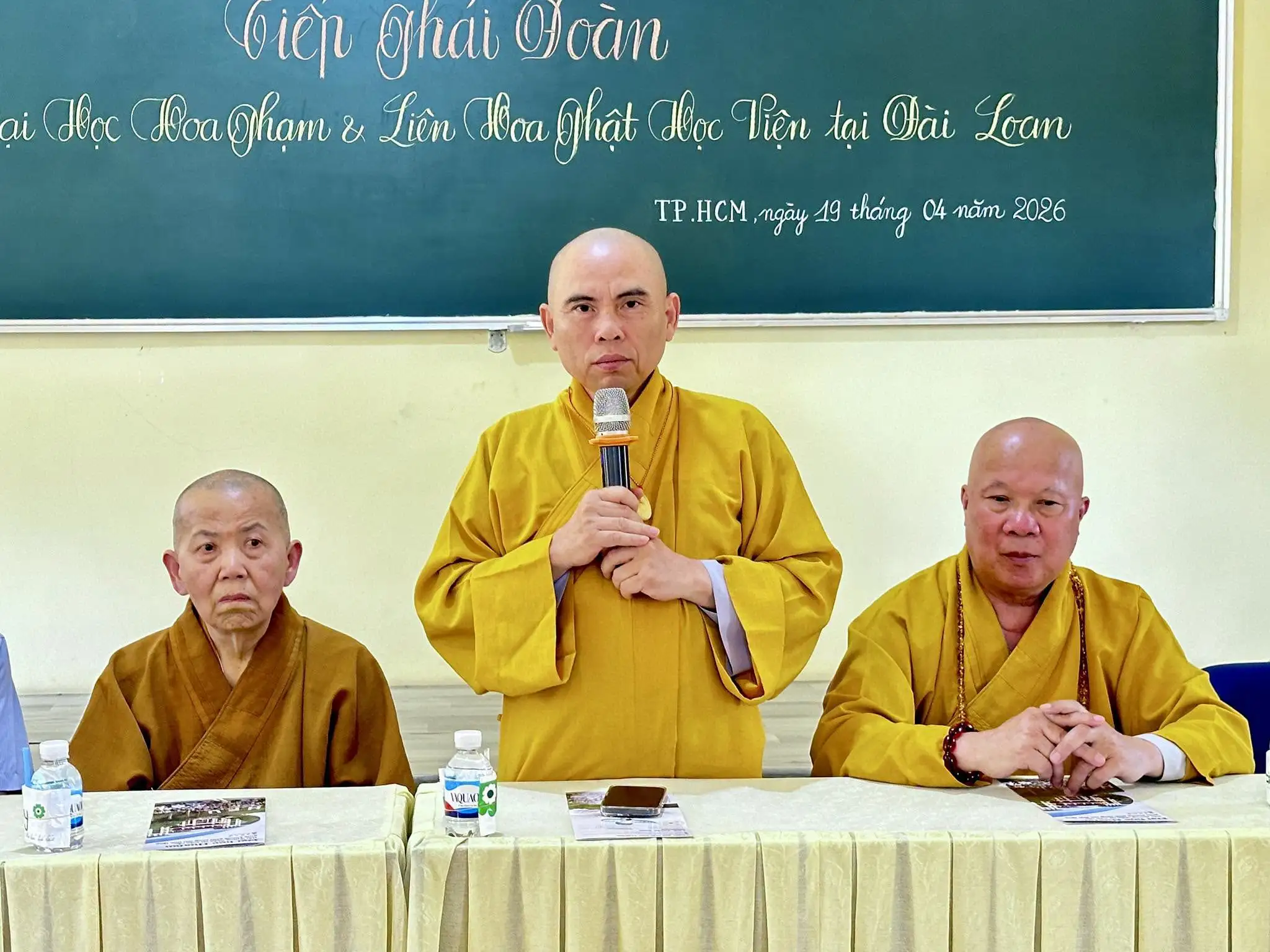 Nhằm tăng cường mối quan hệ hữu nghị trong việc đào tạo Tăng tài, giao lưu hợp tác học thuật, đồng thời thúc đẩy sự phát triển chung về văn hóa và giáo dục Phật giáo giữa hai quốc gia, chiều ngày 19/4/2026, phái đoàn Đại học Hoa Phạm và Liên Hoa Phật học viện (Đài Loan) đã có chuyến thăm và giao lưu đầy ý nghĩa tại Trường Trung cấp Phật học Đại Tòng Lâm (TP.HCM).