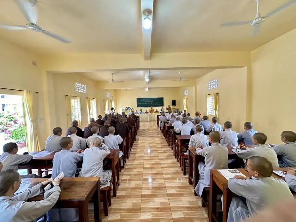 Tiếp đón phái đoàn trong không khí trang nghiêm và thắm tình đạo vị, về phía Ban Giám hiệu Trường Trung cấp Phật học Đại Tòng Lâm có: Thượng tọa Thích Nhuận Nghĩa – Ủy viên HĐTS, Phó Trưởng ban Trị sự GHPGVN TP.HCM, Phó Hiệu trưởng Thường trực nhà trường, Phó Ban Quản trị Tổ đình Đại Tòng Lâm. Thượng tọa Thích Nhuận Phước – Ủy viên Ban Trị sự GHPGVN, Phó Trưởng Ban Quản trị Tổ đình Đại Tòng Lâm. Đại đức Thích Đức Duy – Phó Thư ký, Chánh Văn phòng trường, chư tôn đức Ban Giám hiệu và các Tăng Ni sinh đang theo học tại trường.